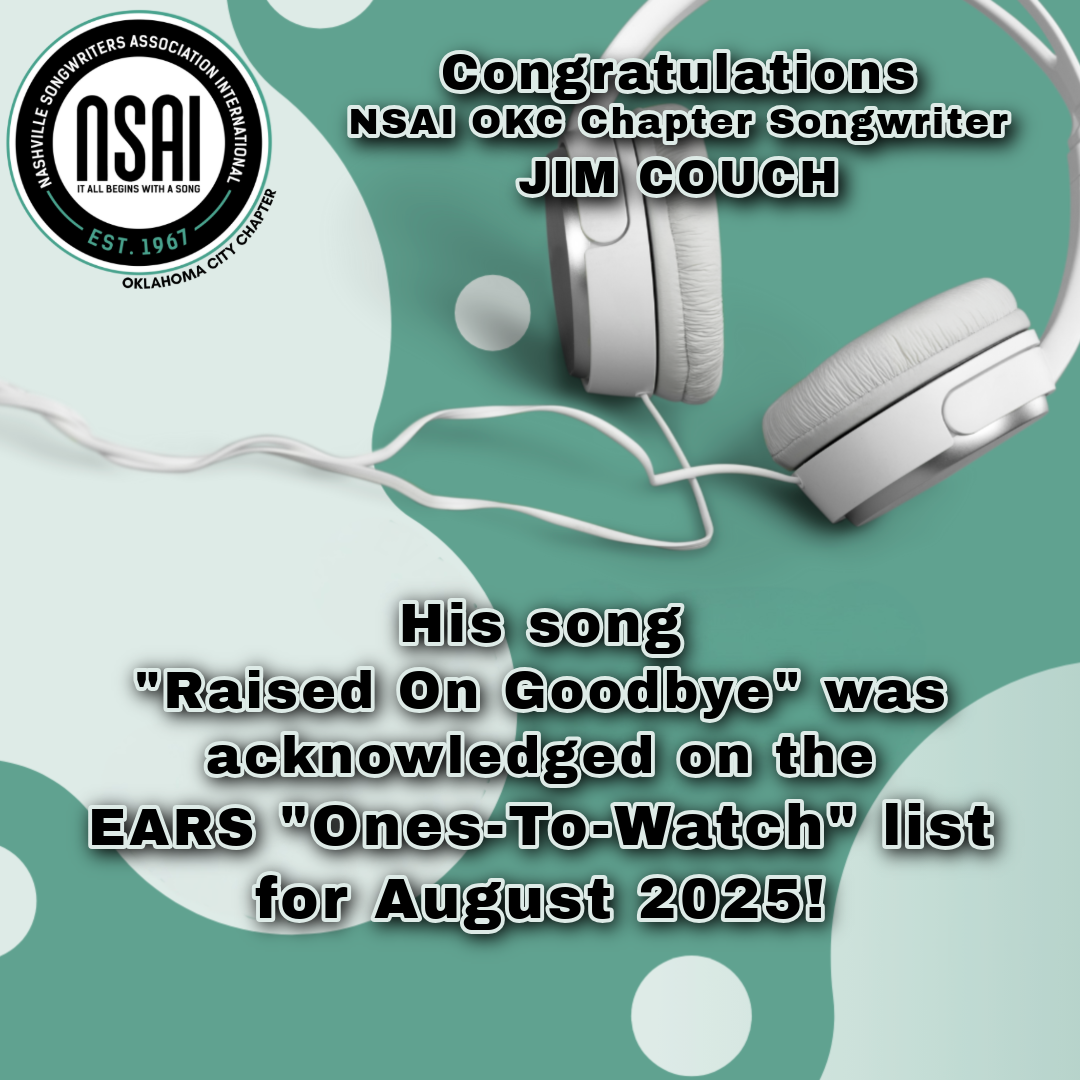 After having two songs recognized on the NSAI EARS Ones To Watch list in July, NSAI OKC Songwriter Jim Couch turned right around and got ANOTHER song (Raised On Goodbye) on the list for August! Congrats Jim, you're on a roll!
