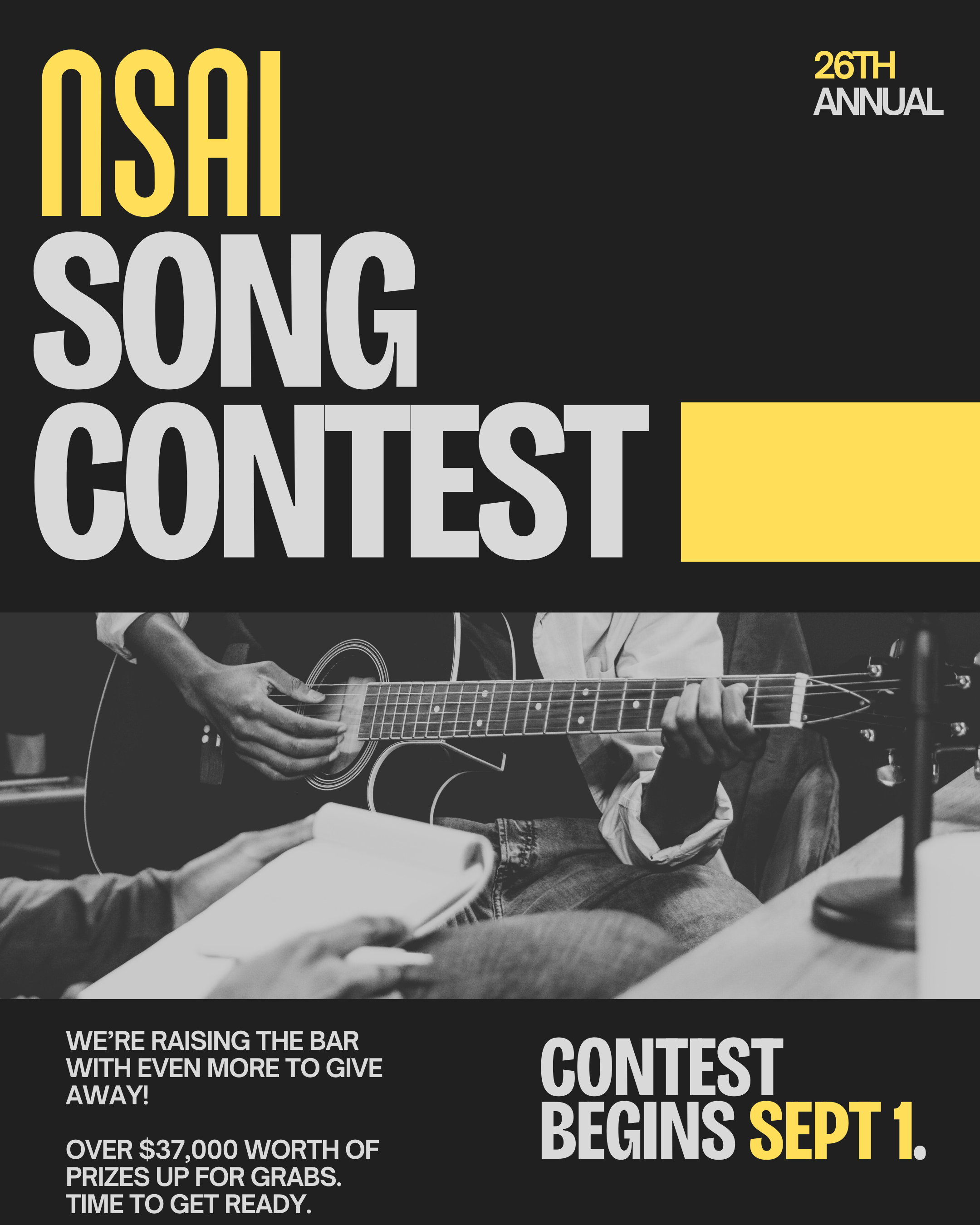 August 27, 2025 (Nashville, Tenn.) – – On September 1, 2025, the Nashville Songwriters Association International (NSAI) will begin accepting submissions for their annual Song Contest, now in its 26th annual year. Beginning at 12:00 p.m. Central, songwriters have two months to submit their best songs and/or lyrics for a chance to win some incredible prizes! This year's contest will award over $37,000 worth of prizes amongst a total of 13 songwriters who either win or are deemed runners-up in the contest. Grand Prize Winners will walk away with one of two cash prizes ($5,000 and $2,500), a complete Home Studio Recording Package from Custom House at Guitar Center, plus $1,500 towards a Guitar Center purchase courtesy of the Guitar Center Music Foundation, a Taylor Guitars Gold Label 517e guitar, a mentor session with either Ashley McBryde or Rivers Rutherford, a one-year single-song publishing contract with BMG, a pair of tickets to 9th annual Nashville Songwriter Awards in 2026, a personalized Music Row Experience, prizes from Musicnotes and the Nashville Convention and Visitors Corp, custom capos from G7th The Capo Company, industry meetings, an experience at The Bluebird Cafe and even a chance to participate in a Group Mentor Session with hit songwriter Josh Osborne!.