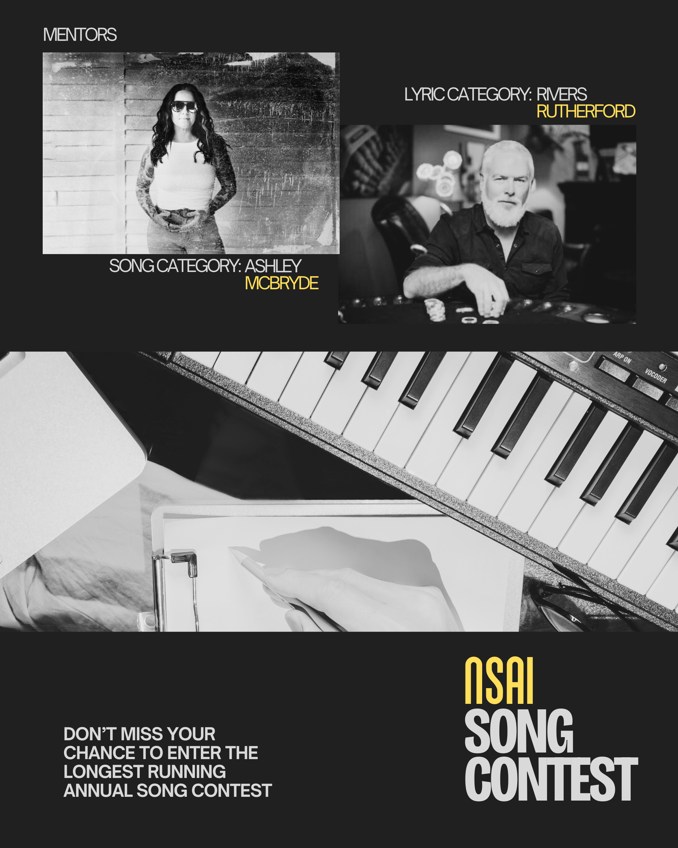 Entries may be submitted online at www.nsaisongcontest.com. The fees to enter $35 per song or lyric entry for current NSAI members and $45 per song or lyric entry for the general public. There is no limit to the number of songs or lyrics that songwriters can submit, and the submission portal closes at 5:00 p.m. Central on October 31, 2025.