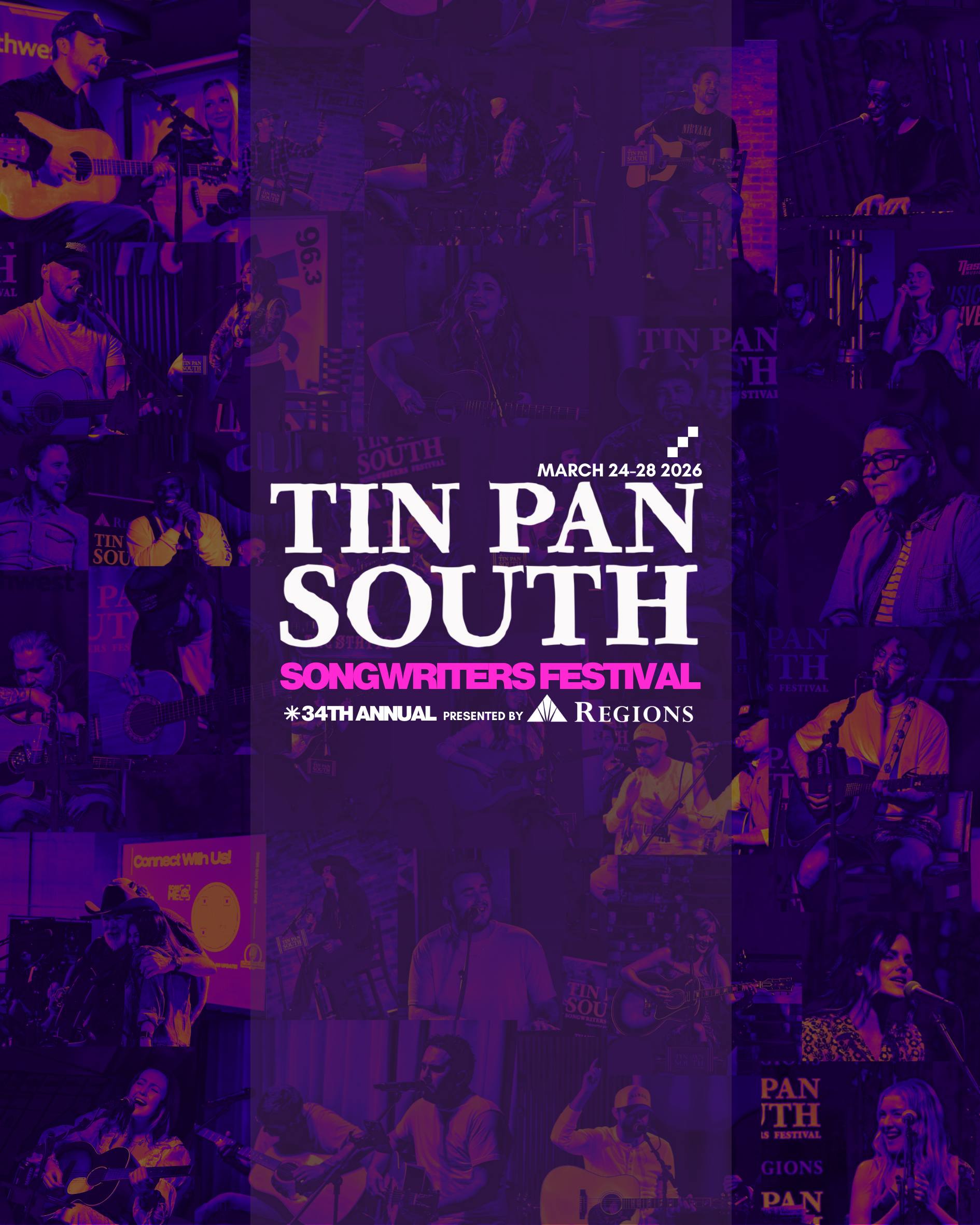 January 5, 2026 (Nashville, Tenn.) – Following the success of the 33rd annual Tin Pan South Songwriters Festival, the Nashville Songwriters Association International (NSAI) alongside presenting partner Regions Bank, excitedly announced plans to hold the annual festival once again in the springtime, reserving music-enthusiast's calendars for March 24-28, 2026. With preparations now underway for the 34th annual five-day event, staff and festival partners are eager to share additional details and are looking forward to gathering over 400 professional songwriters of all ages and genres to the heart of Music City once again.