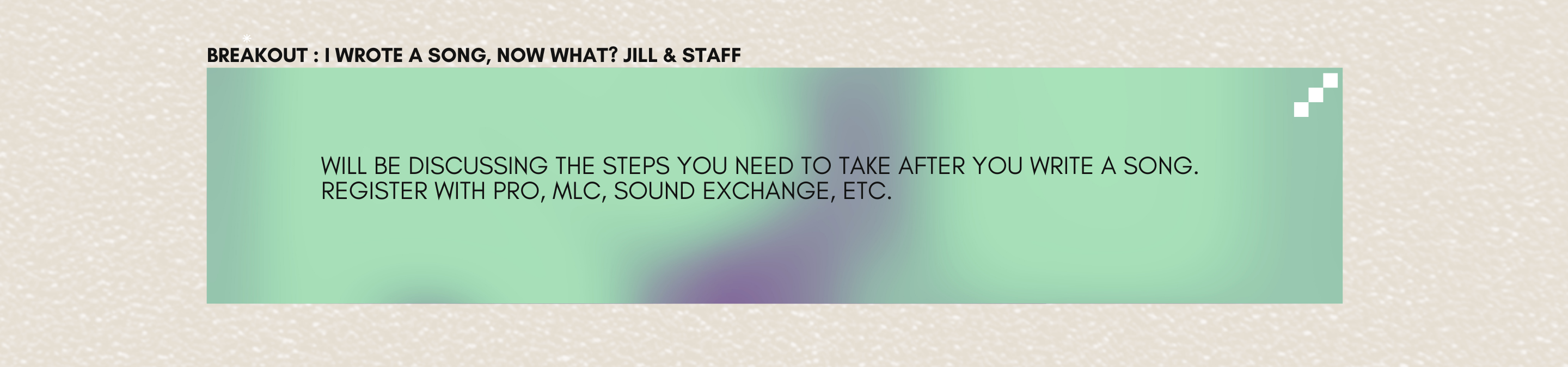 Only registered attendees are eligible to submit ONE ORIGINAL SONG for 'Best Of'. Upload your song (Mp3) and lyric sheet by March 2nd, 2026. ONE entry per person, only.