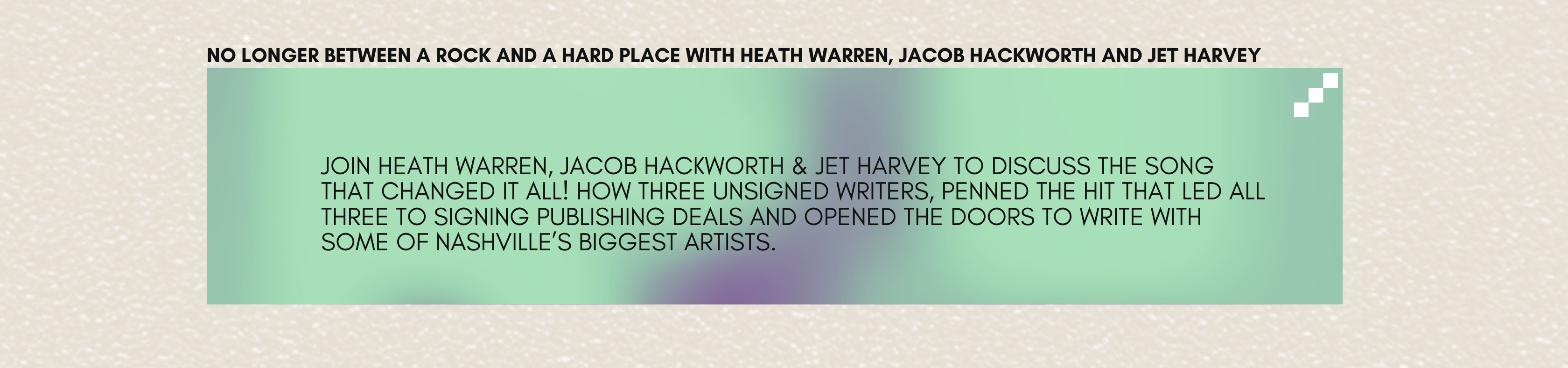 As NSAI’s longest-running event (formerly known as Spring Training) we are proud to say that this seminar has been the standard by which all other Nashville songwriting seminars are measured. Former attendees include hit writers Jon Vezner (Where’ve You Been – Kathy Mattea), Tia Sillers (I Hope You Dance – LeAnne Womack), Barry Dean (Girls Chase Boys - Ingrid Michaelson, Pontoon – Little Big Town) and Lance Carpenter (Love Me Like You Mean It – Kelsea Ballerini).